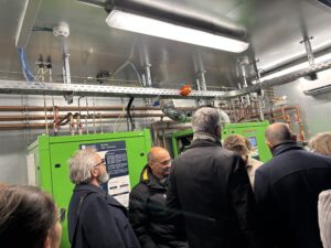 Der Leuchtturm H2-Grid beschäftigt sich innerhalb unserer H2-Wandel – Modellregion Grüner Wasserstoff Baden-Württemberg mit der Erforschung dezentraler Wasserstoffinfrastruktur für Kommunen, Quartiere und Industrie. Was dafür alles notwendig ist, konnten wir und die vielen anderen Gäste gestern unter sachkundiger Führung vor Ort begutachten: zwei Elektrolyseure, ein zu 100-Prozent mit Wasserstoff betriebenes Blockheizkraftwerk, eine Brennstoffzelle, ein Kompressor mit vier Speicherbündeln, ein Gaschromatograph sowie ein Wasserstoff-Microgrid zur Modellierung des Gesamtsystems eines Stromnetzes. Eine tolle Sache, dieses Zusammenspiel der Komponenten zu erleben!
