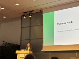 Glückwünsche und viel Anerkennung gab es auch seitens der Redner*innen: Prof. Sabine Löbbe (Präsidentin der Hochschule Reutlingen), Greta Schirmer-Förster (Erste Landesbeamtin und stellvertretende Landrätin des Landkreises Reutlingen), Thomas Keck (Oberbürgermeister der Stadt Reutlingen) und Dr. André Baumann (Staatssekretär am Ministerium für Umwelt, Klima und Energiewirtschaft).
