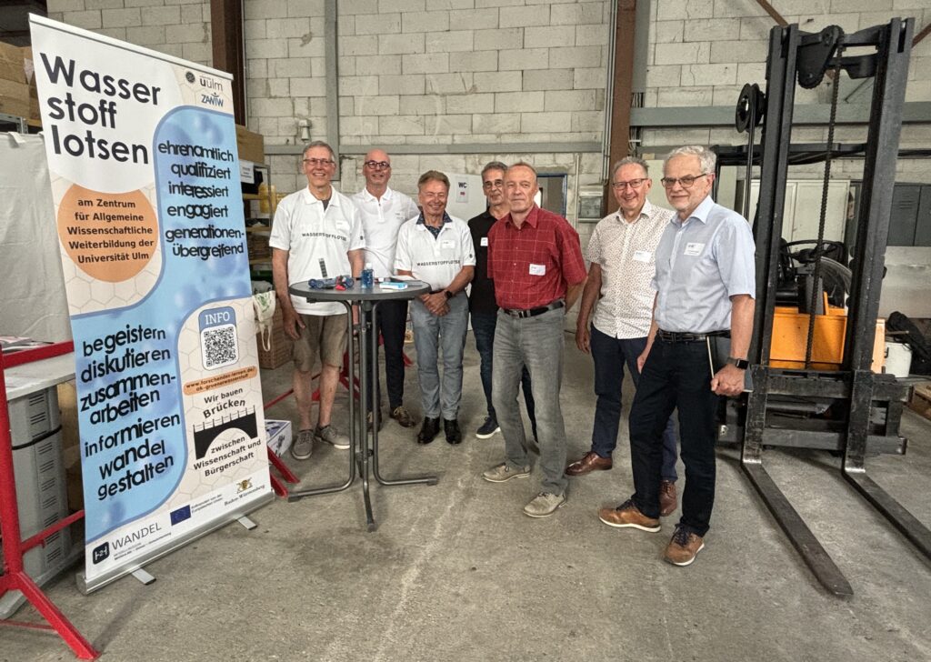 Die Lotsen sind, das haben wir an dieser Stelle schon mehrfach berichtet, unsere Ehrenamtlichen, die innerhalb unseres H2-Wandel-Projekts eine zentrale Rolle einnehmen als Brücke zur breiten Öffentlichkeit. Sie gehen in Schulen, halten Vorträge, laden zu Workshops ein. Angesiedelt sind sie am Zentrum für Allgemeine Wissenschaftliche Weiterbildung der Universität Ulm. Ausgebildet werden sie am Weiterbildungszentrum für innovative Energietechnologien (WBZU) der Handwerkskammer Ulm. Mehr als 40 Männer und Frauen sind im Ulmer Team.