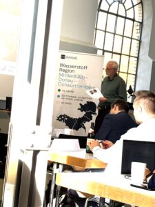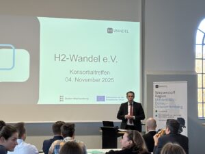 Herzlichen Dank an alle unsere Partner, an den Landkreis Heidenheim für die Gastfreundschaft und an die Vertreter*innen seitens des Fördermittelgebers, die unser Treffen begleitet haben: Lea Becker und Svenja Wiedmann vom Ministerium für Umwelt, Klima und Energiewirtschaf sowie an Vincent Weyershausen vom Projektträger KIT – PTKA. Und herzlichen Dank auch an Prof. Markus Hölzle, Leiter des ZSW in Ulm und Vorstandsmitglied von H2-Wandel für die Zusammenfassung seiner jüngsten Exkursionen! Spannend zu hören, wie in anderen Ländern etwa im Oman oder in den VAE über grünen Wasserstoff gedacht wird!