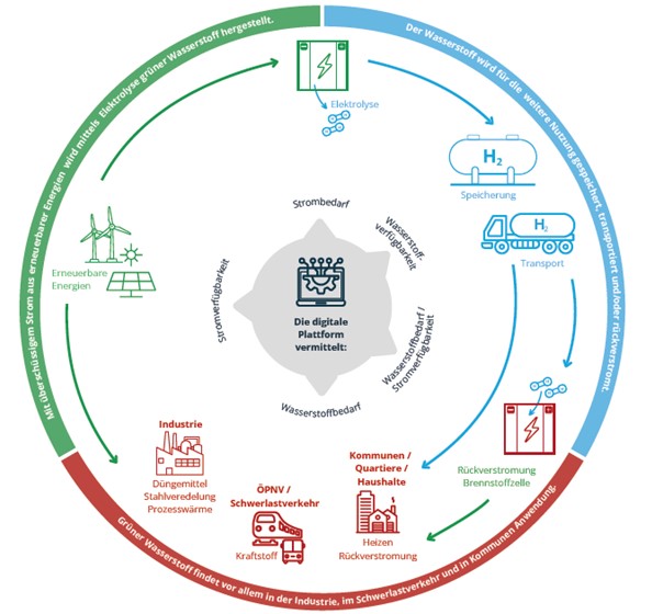 Vernetzung von dezentraler Wasserstofferzeugung und den Verbrauchern