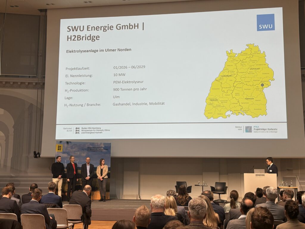 Heute wurde bei der Jahresabschlussveranstaltung der Plattform H2BW im Stuttgarter Haus der Wirtschaft eindrucksvoll gezeigt, dass der Wasserstoffhochlauf in Baden-Württemberg Fahrt aufnimmt. Denn in diesem Rahmen fand die Bescheid-Übergabe aus dem Landes-Förderprogram ELY statt. Wir von der H2-Wandel – Modellregion Grüner Wasserstoff Baden-Württemberg waren vor Ort und hatten gleich doppelten Grund zur Freude!