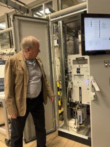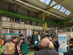 Der Leuchtturm H2-Grid beschäftigt sich innerhalb unserer H2-Wandel – Modellregion Grüner Wasserstoff Baden-Württemberg mit der Erforschung dezentraler Wasserstoffinfrastruktur für Kommunen, Quartiere und Industrie. Was dafür alles notwendig ist, konnten wir und die vielen anderen Gäste gestern unter sachkundiger Führung vor Ort begutachten: zwei Elektrolyseure, ein zu 100-Prozent mit Wasserstoff betriebenes Blockheizkraftwerk, eine Brennstoffzelle, ein Kompressor mit vier Speicherbündeln, ein Gaschromatograph sowie ein Wasserstoff-Microgrid zur Modellierung des Gesamtsystems eines Stromnetzes. Eine tolle Sache, dieses Zusammenspiel der Komponenten zu erleben!