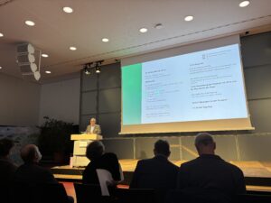 Die Keynote hielt Prof. Markus Hölzle, Vorstandsmitglied des Zentrums für Sonnenenergie- und Wasserstoff-Forschung Baden-Württemberg (ZSW) und Vorstandsmitglied unseres Vereins H2-Wandel. Unter dem Titel: „Grüner Wasserstoff und grüne Elektronen – auf zwei Beinen steht die Energiewende besser“ führte er den Gästen vor Augen, was in Deutschland und vor allem in Baden-Württemberg mit Blick auf das Ziel der Klimaneutralität inzwischen alles erreicht wurde. Trotz etlicher Kehrtwenden auf politischer Ebene, trotz aller herausfordernden Entwicklungen der regionalen und globalen Märkte: Es geht mit der Energiewende voran, machte Prof. Hölzle klar: Der Ausbau der Erneuerbaren Energien läuft zügig, große Batteriespeicher werden aufgebaut, und Wasserstoff erobert sich in diesem Szenario nach und nach seinen Platz.
