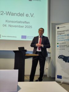 Herzlichen Dank an alle unsere Partner, an den Landkreis Heidenheim für die Gastfreundschaft und an die Vertreter*innen seitens des Fördermittelgebers, die unser Treffen begleitet haben: Lea Becker und Svenja Wiedmann vom Ministerium für Umwelt, Klima und Energiewirtschaf sowie an Vincent Weyershausen vom Projektträger KIT – PTKA. Und herzlichen Dank auch an Prof. Markus Hölzle, Leiter des ZSW in Ulm und Vorstandsmitglied von H2-Wandel für die Zusammenfassung seiner jüngsten Exkursionen! Spannend zu hören, wie in anderen Ländern etwa im Oman oder in den VAE über grünen Wasserstoff gedacht wird!