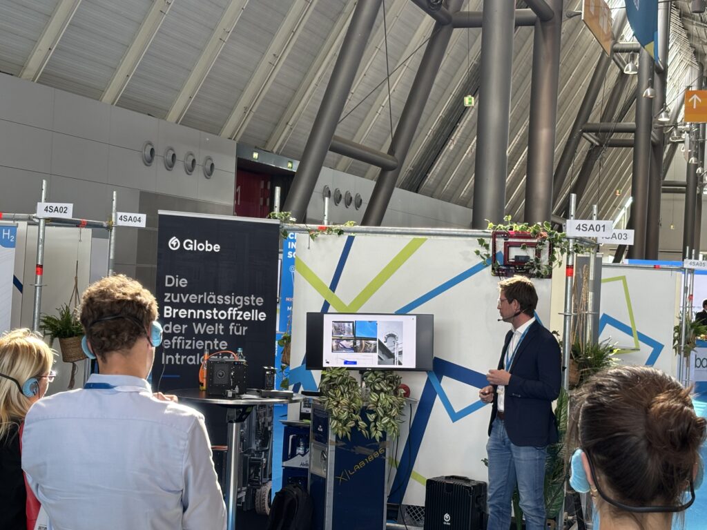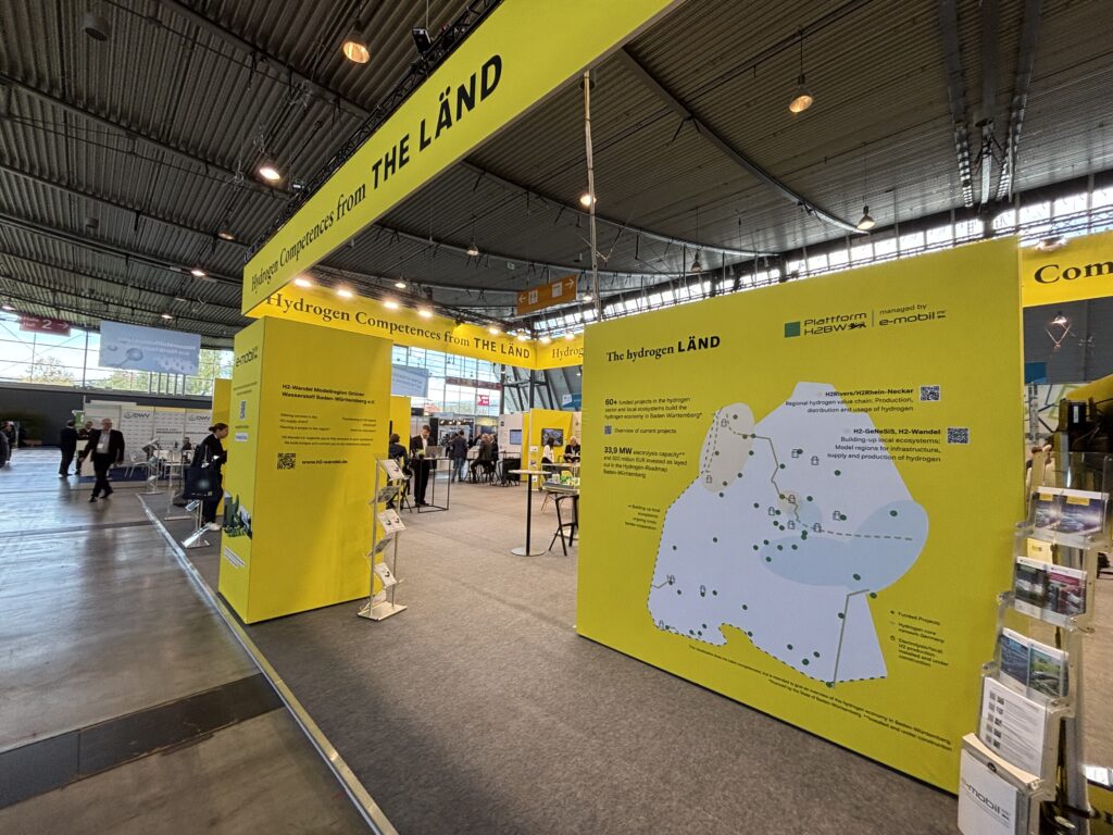 Unser moderierter Rundgang über die Messe führte uns von der HYDI INNOVATION GmbH (Energiesteuerungssysteme) über die GLOBE Fuel Systems GmbH (digital vernetze Brennstoffzellensysteme) und WAVE H2 (Forschungs- und Integrationsplattform sowie Innovationsmodule für Wasserstofftechnologien) bis zur NEUMAN & ESSER Deutschland GmbH & Co. KG (ganzheitliche Lösungen für die Energieinfrastruktur von morgen). Ausreichend Zeit, um sich über alle die neuen Informationen auszutauschen blieb nach dem Rundgang noch am Stand der e-mobil BW. Herzlichen Dank für die Gastfreundschaft!